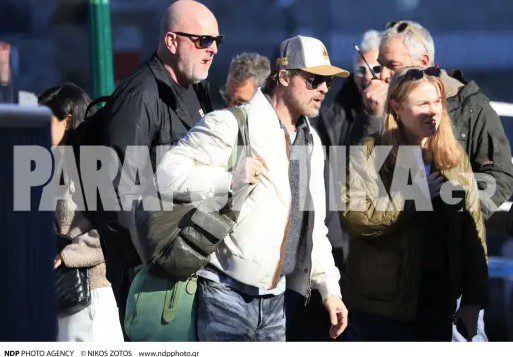 Οι φωτογραφίες δείχνουν τον Μπραντ Πιτ να φτάνει στο λιμάνι, να αποβιβάζεται από το σκάφος και να περνάει στα σοκάκια της Ύδρας, ενώ οι κάτοικοι και οι επισκέπτες έχουν την ευκαιρία να τον δουν από κοντά.