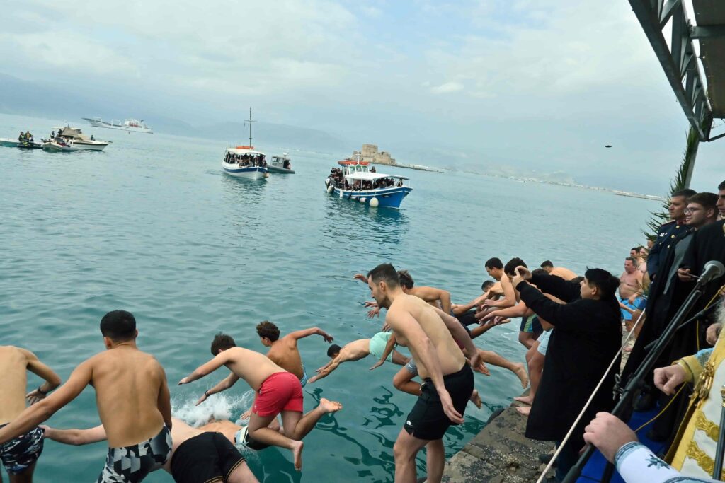 Ο Μητροπολίτης Αργολίδος, κ. Ιερώνυμος, τέλεσε την τελετή της κατάδυσης, ενώ αρκετοί πιστοί βούτηξαν στα νερά για να πιάσουν τον Σταυρό, σύμφωνα με το παραδοσιακό έθιμο.